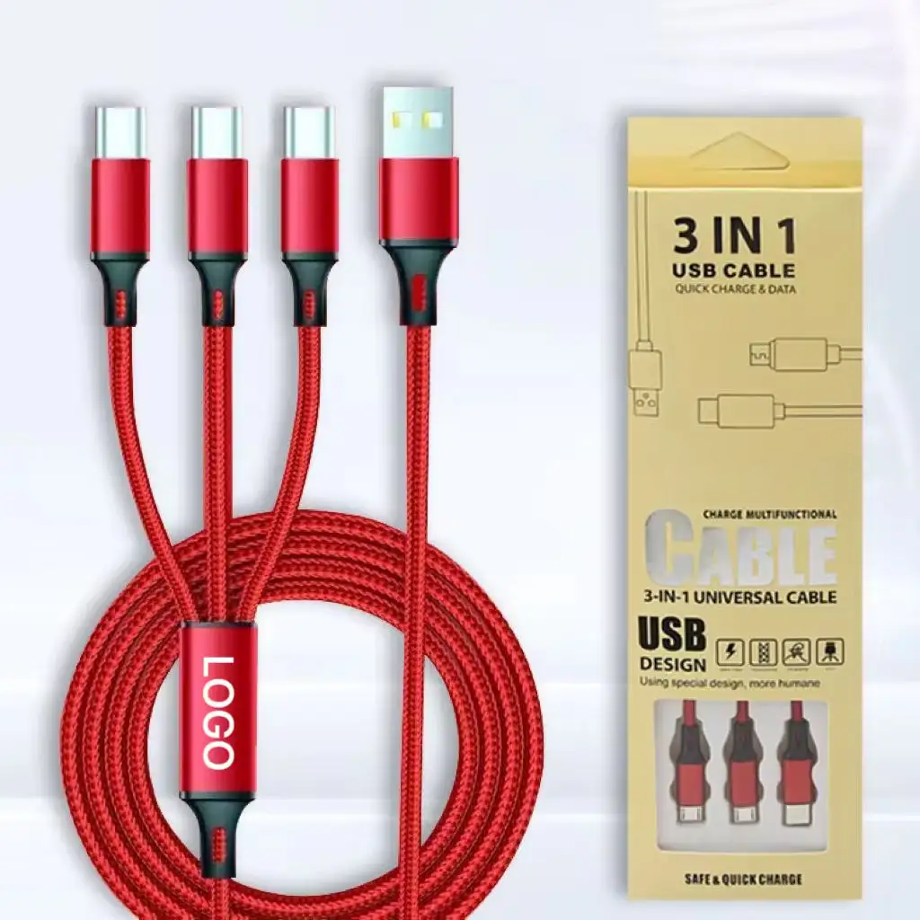 Hot Selling Multiple Universal 3in1 Charger One USB Multi 3 in 1 Charging Data USB Cable for Phone Micro USB Type C